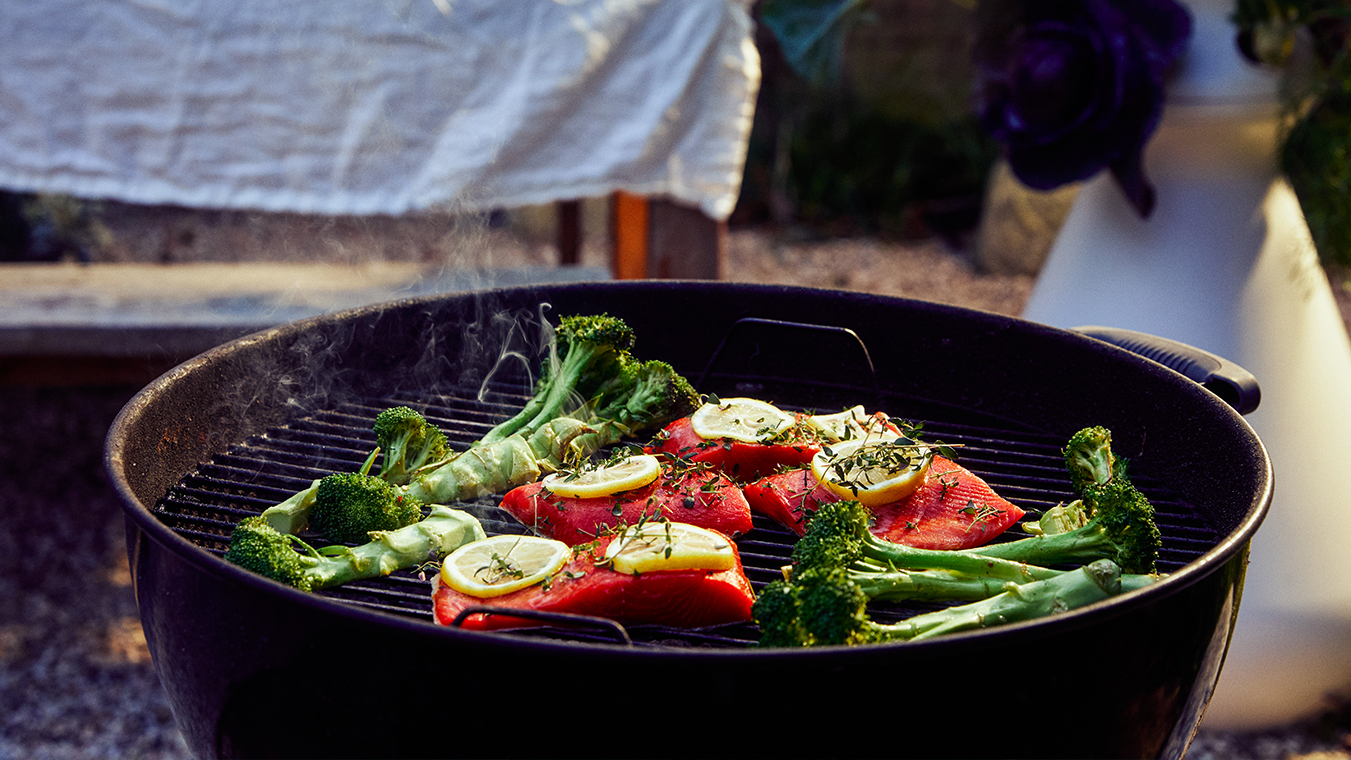 Remove the salmon and broccoli from the grill.
